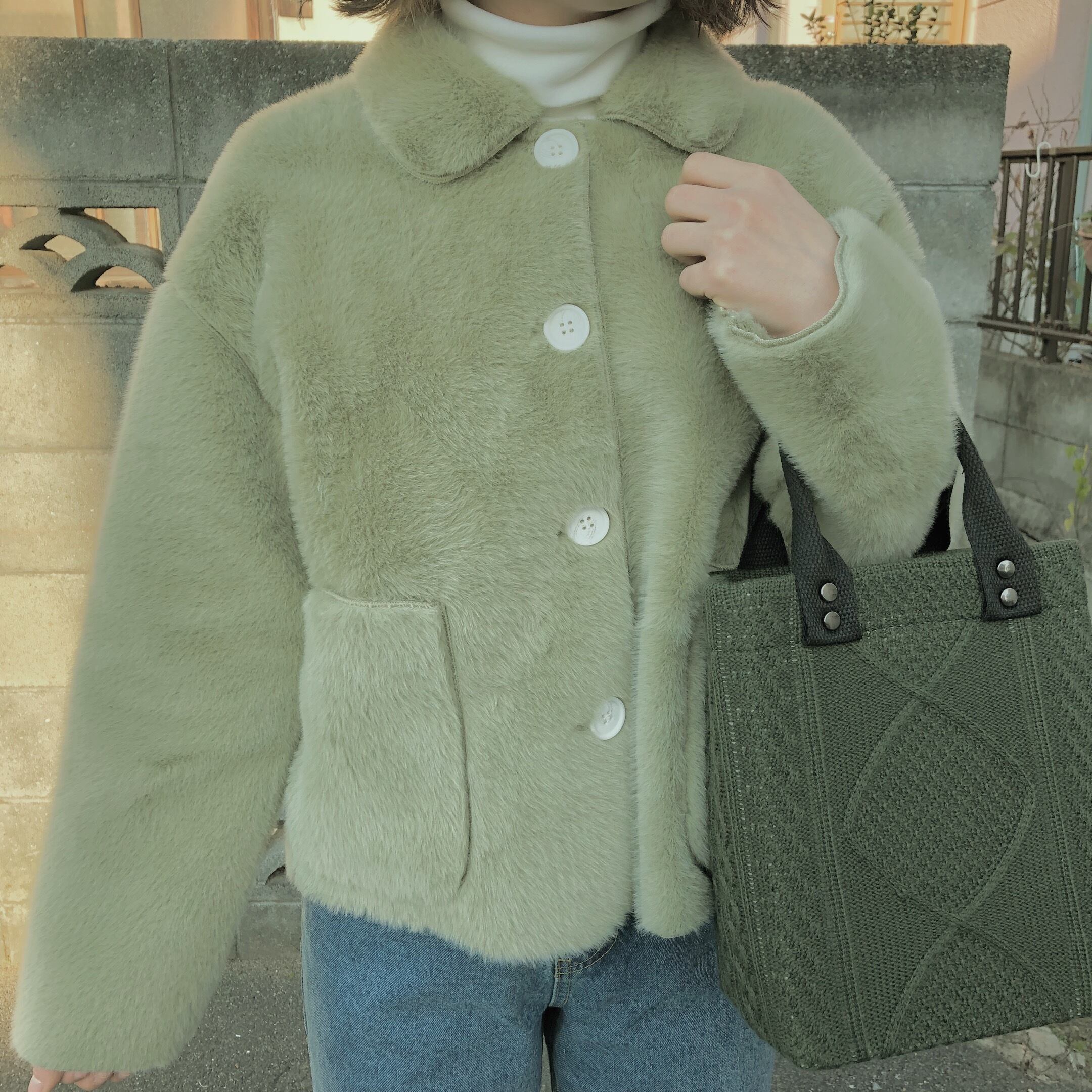 エコファーの肌ざわりは抜群に気持ちがいいです。軽くて、どんなボトムスにも合わせやすい丈です。