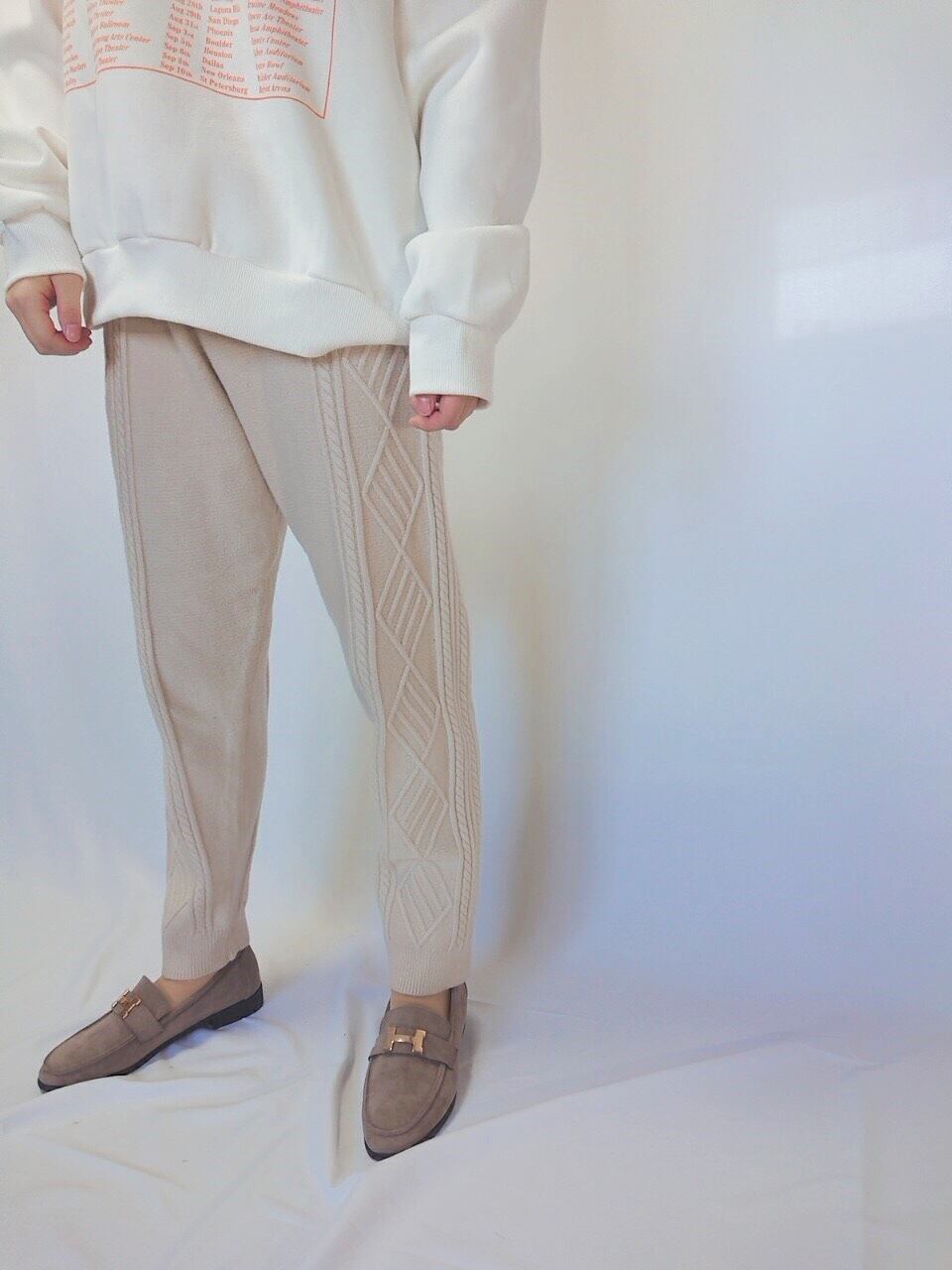 素肌に履いてもチクチクしない柔らかい肌触りのニットです。