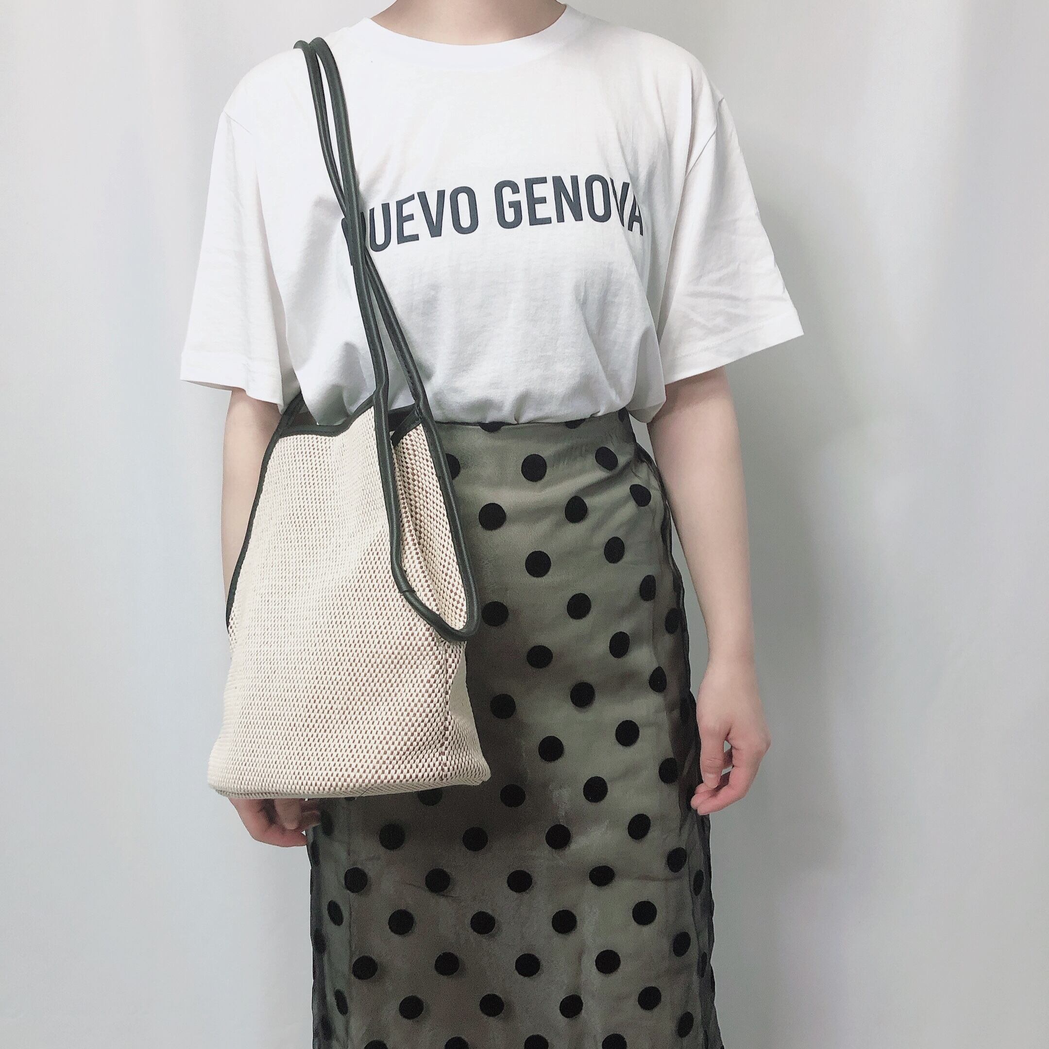 天気の良い日に持ちたくなる、そんなバッグです。底にはマチがしっかりあるので容量も◎